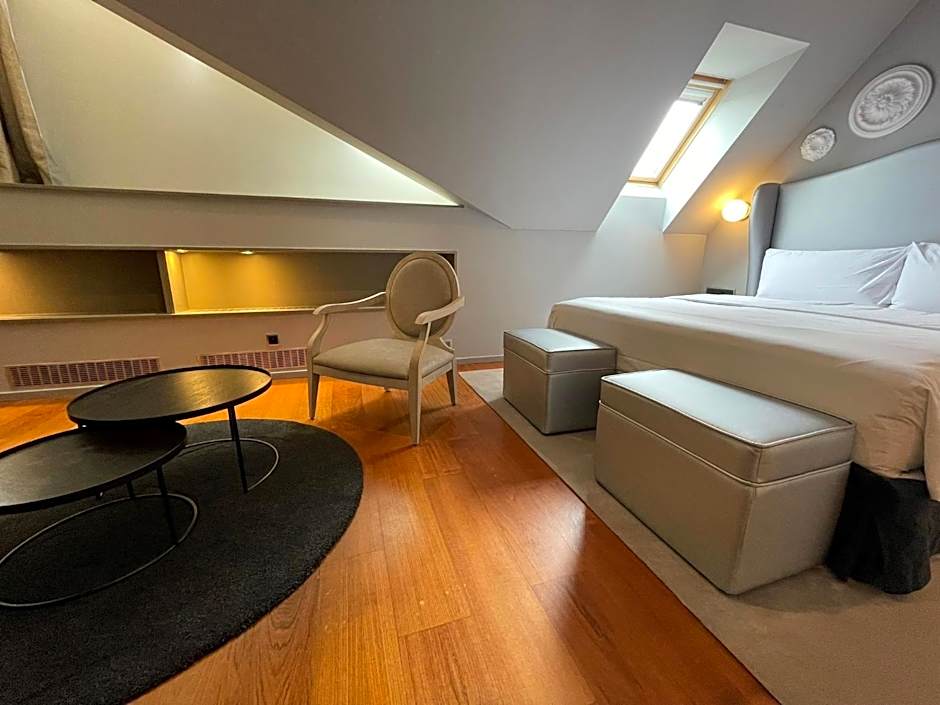 Spacious suite with living room with sleeping area, hardwood floor and details designed by Philippe Starck. Nespresso coffee machine with free capsules is provided.